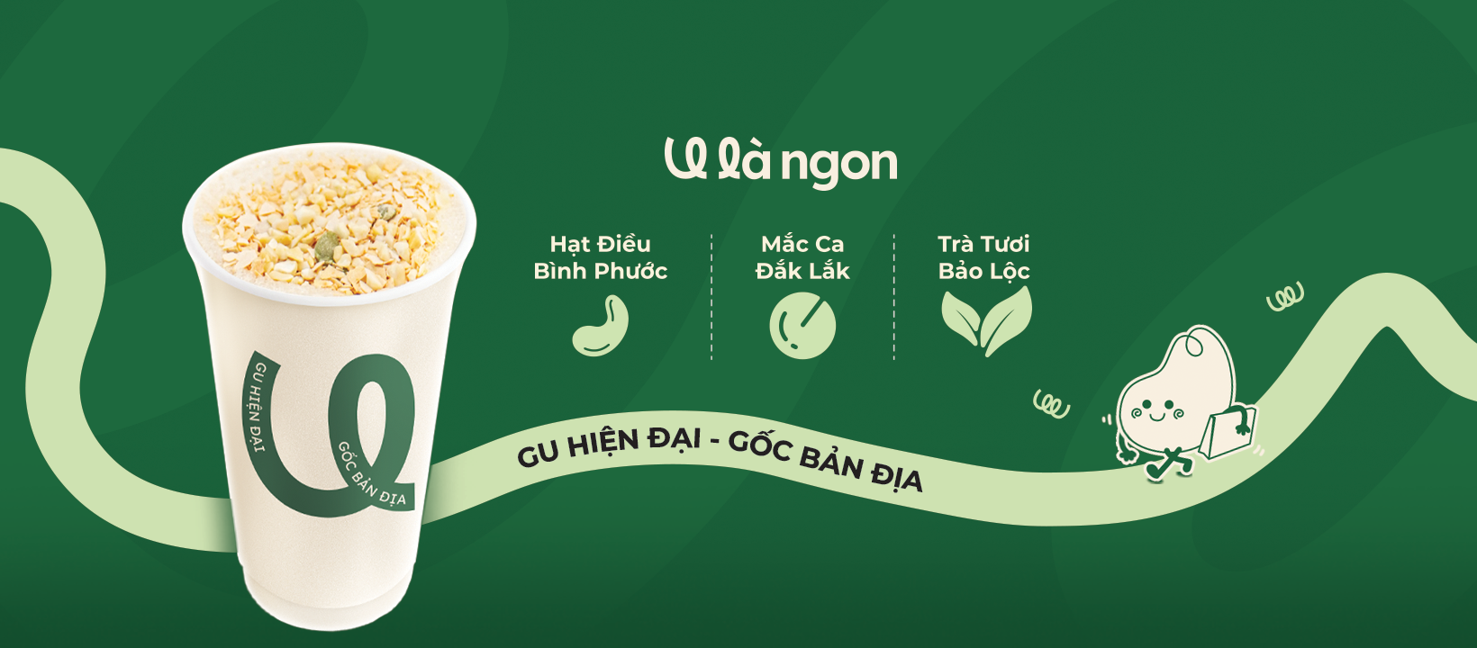 Hạt điều Bình Phước, mắc ca Đắk Lắk, trà tươi Bảo Lộc…là những nguyên liệu bản địa tụi mình tự hào sử dụng để đưa vào từng công thức. Đó là cách tụi mình luôn giữ “Gốc Bản Địa” trong từng thức uống.